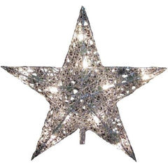 - Bring a cool, silvery shine to your Christmas tree with this 10-light 9" silver wire treetop by Kurt Adler. Its classic 5-point star design has a glittery silver finish that is sure to add sparkle to your holiday decor. Each star has a 48" green lead wire, 12V 0. 72W clear incandescent bulbs, 4 spare bulbs and 1 fuse. For indoor use only.
