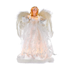 - Complete the lighting and decor of your Christmas tree with Kurt Adler's ivory angel treetop. This beautiful 12" angel is wearing a soft, innocent ivory gown with feathered wings to match. She is lit with 10 lights, from her candles to her gown. She comes with 4 spare bulbs and 1 fuse.