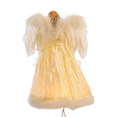 - Complete the lighting and decor of your Christmas tree with Kurt Adler's ivory angel treetop. This beautiful 12" angel is wearing a soft, innocent ivory gown with feathered wings to match. She is lit with 10 lights, from her candles to her gown.