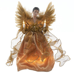 - This Kurt Adler 13-inch UL 10 Light Gold African American Angel Treetop is a fun and festive way to add to your holiday décor. This angel is wearing an elegant gold wedding-dress like gown. Her dress has 4 gold ribbons coming down from the waist. Her wings are as gold as her dress and resemble traditional feather- like angel wings. To complete the Christmas theme she holds a candlestick in each hand.