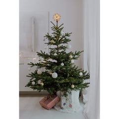 - Add to the lighting and décor of your Christmas tree with this 14" 7-Point Natural Capiz Star Lighted Treetop by Kurt Adler. This classic star is adorned with a spray of wire rays and acrylic beads, and is framed with a brass plated finish. This lighted treetop includes 4 spare bulbs and 2 spare fuses.